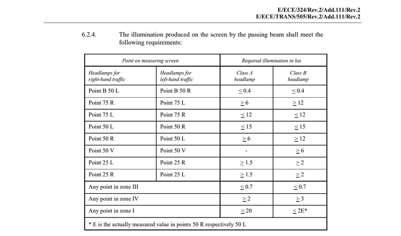 ECE proposes a new passing beam standard which enables continuous illumination along a safe braking distance of approximately 60-70 meters. It is also aimed to prevent the dazzling effect in the rear-view mirror during night drive, caused by the illumination coming from the vehicles behind, thereby providing a safer and more comfortable drive by enabling use of the rear-view mirror in the daylight setting. The proposed system is also intended to improve the vision distance at turns without suing any additional headlamp mechanism. The issues discussed herein may also be considered for other Regulations concerning the passing beam illumination.