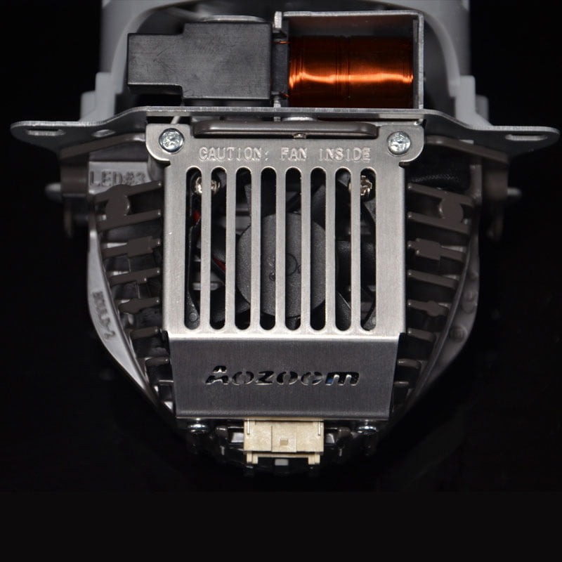 A3 bi-led is one of the projectors that have the heatsink as well as the double ball bearing fans on the bottom, which efficiently cooling the PCB board and LEDs, ensure LEDs operating on a safety temperature and lasting for long time.